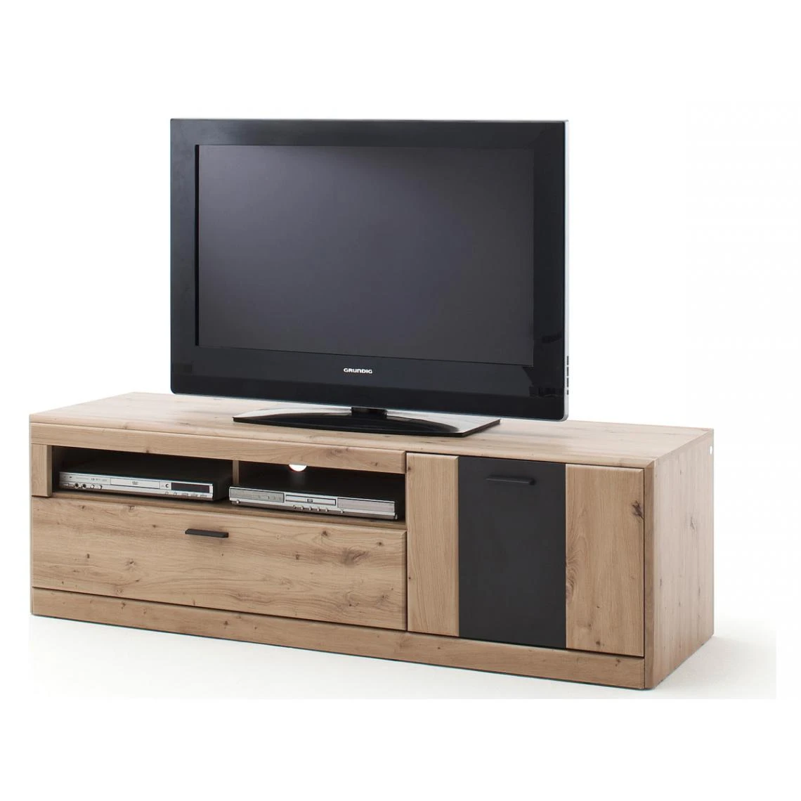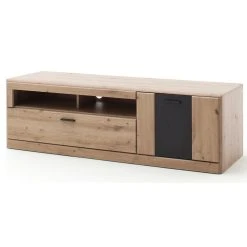 Points forts Pegane Meuble TV coloris chêne – Longueur 159 x Hauteur 50 x Profondeur 51 cm