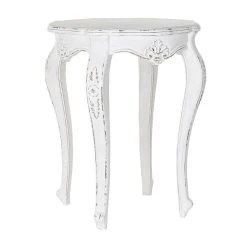 Table d’appoint ronde fabriquée en bois de manguier coloris blanc.