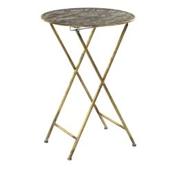 Table d’appoint pliable en métal avec sa forme ronde et unique.