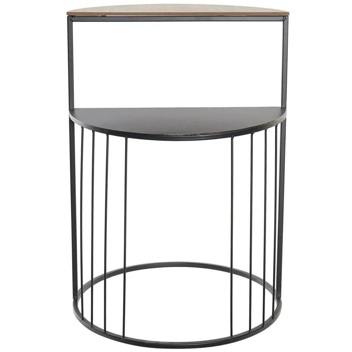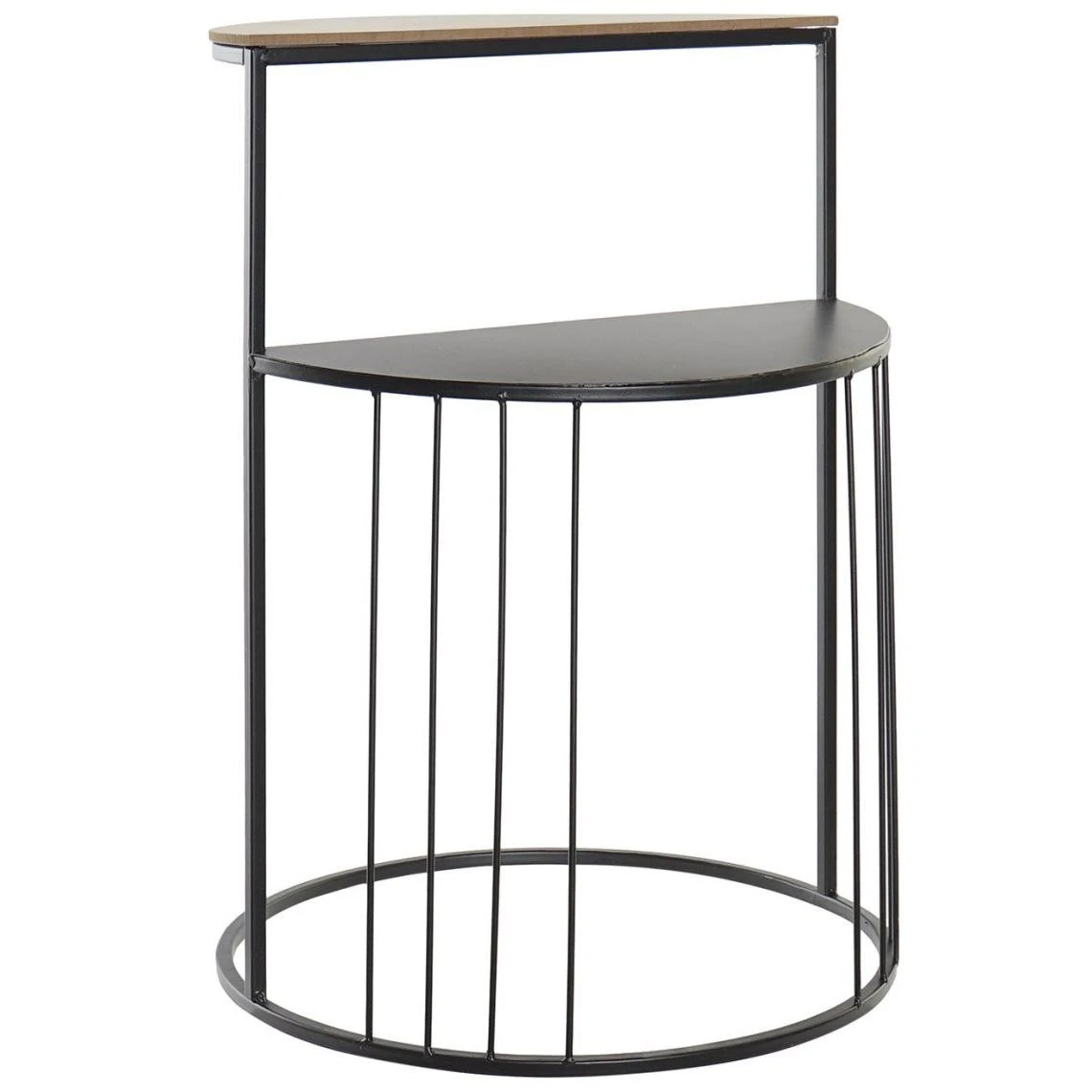 Table d’appoint ronde avec plateau en MDF naturel et structure en fer coloris noir.