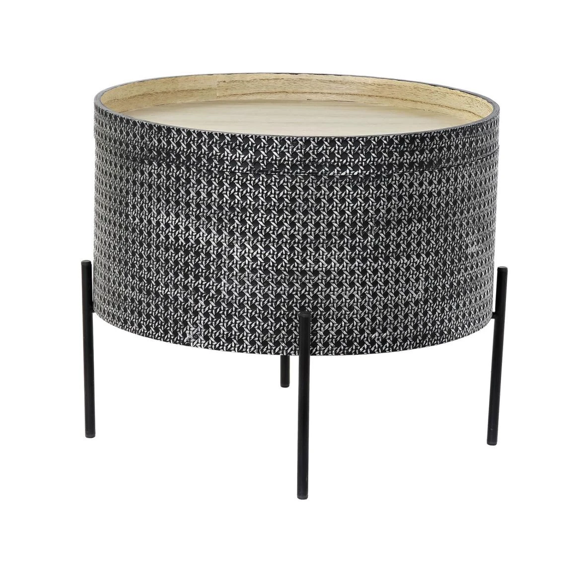 Table d’appoint ronde en MDF et métal avec couvercle. Sa finition vieilli lui donnera un déco à votre salon.