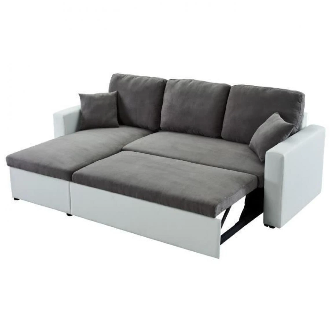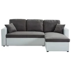 Points forts Sans Marque ASPEN Canape dangle reversible convertible 3 places + Coffre de rangement – Tissu gris et simili blanc – L 223 x P 150 cm