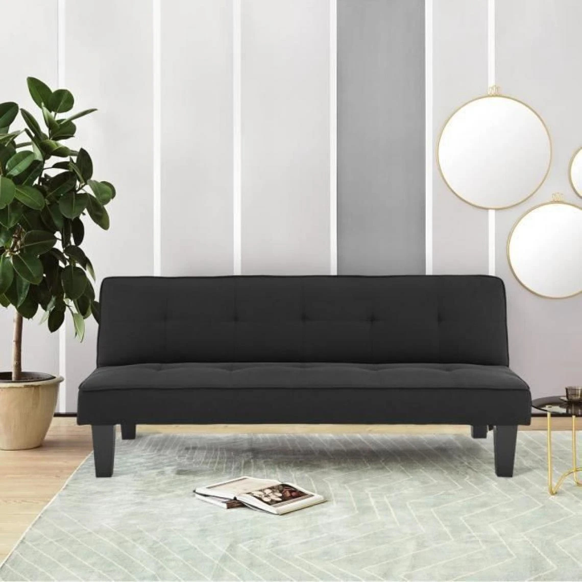 Points forts Sans Marque CELIA Banquette Clic-Clac 3 places contemporain capitonne – Tissu noir – L 168 x P 73 x H 71 cm