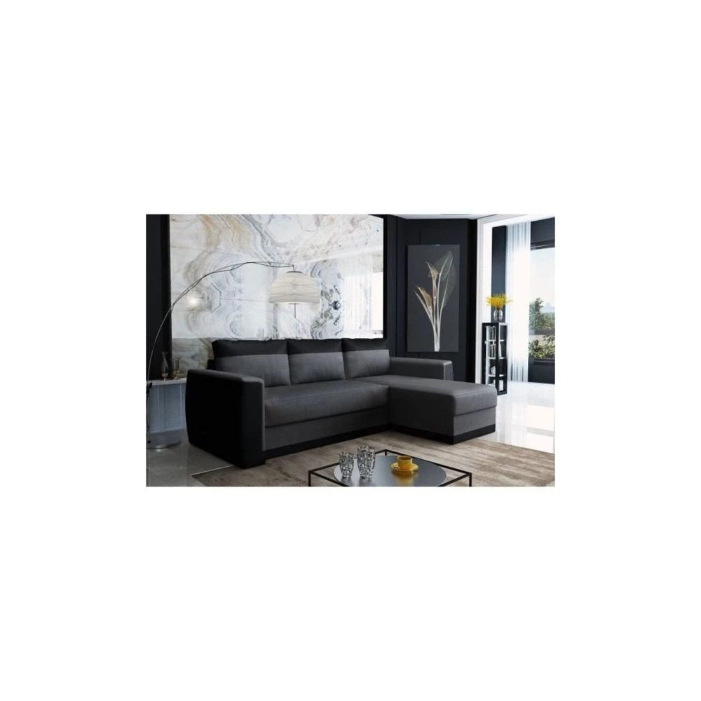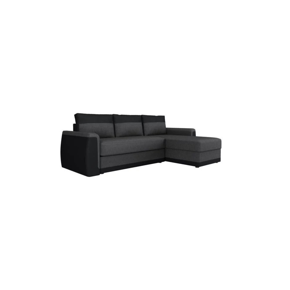 JAMES Canapé d’angle convertible 3 places noir et gris anthracite – Style et design contemporain – Structure en panneaux particules, contreplaqué et hetre – Revetement en simili et tissu sawana – Ferme – Couchage l 122 x L 190 cm – Avec coffre de rangement – Mousse PU 25kg/m3 + 16kg/m3 – Méridienne réversible – Fabrication européenne – Canapé L 230 x P 142 x H 85 cm – Assise L 190 x P 54 x H 42 cm.