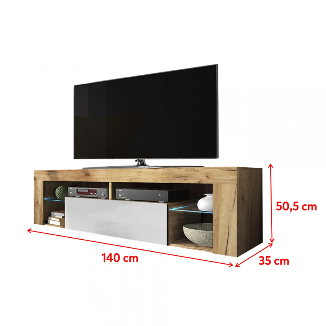 Points forts Selsey Meuble tv – BIANKO – 140 cm – chêne lancaster / blanc brillant – avec LED