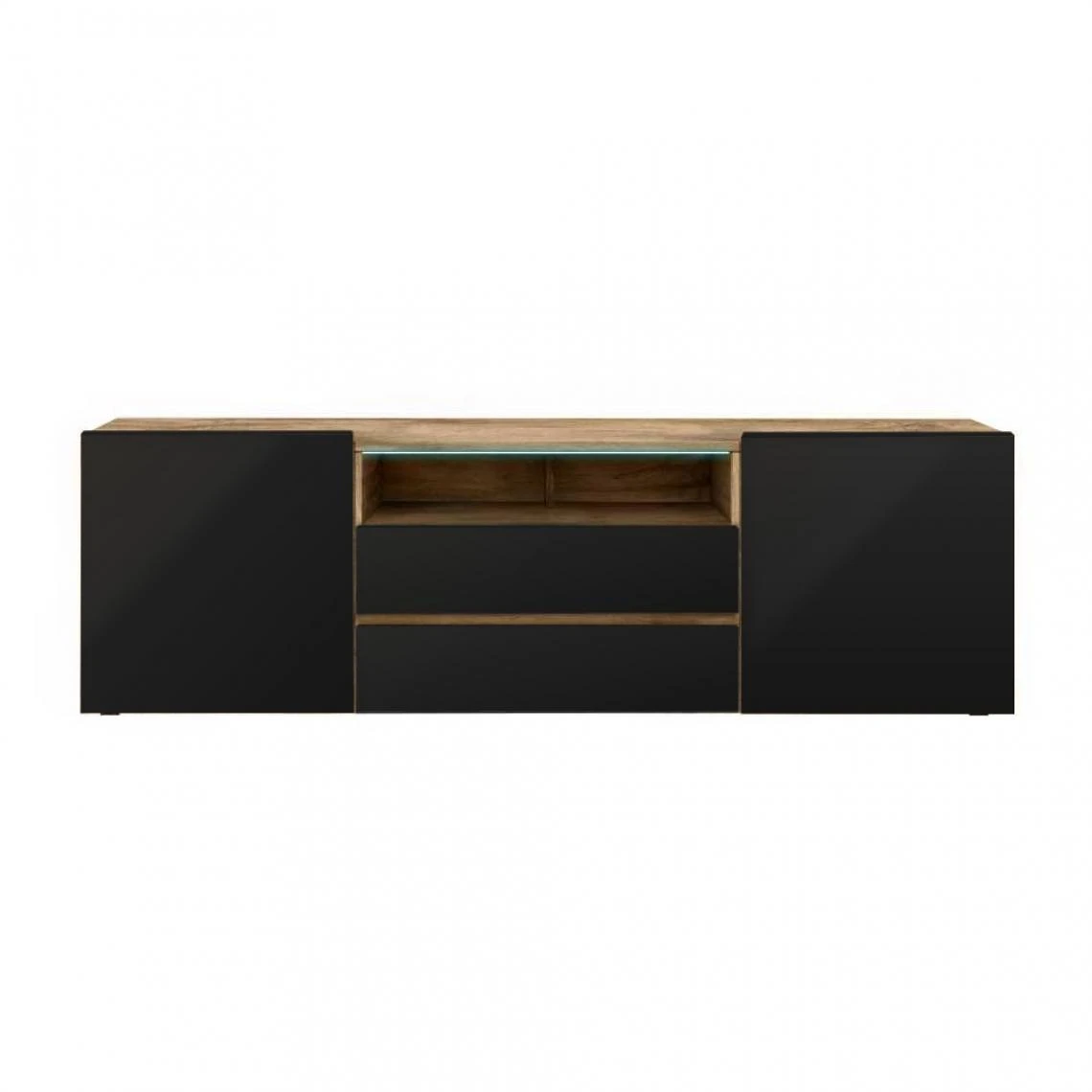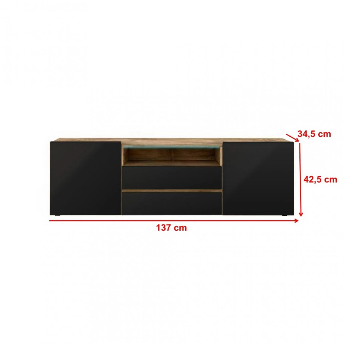 Points forts Selsey Meuble TV – BROS – 137 cm – chêne wotan / noir brillant – avec LED