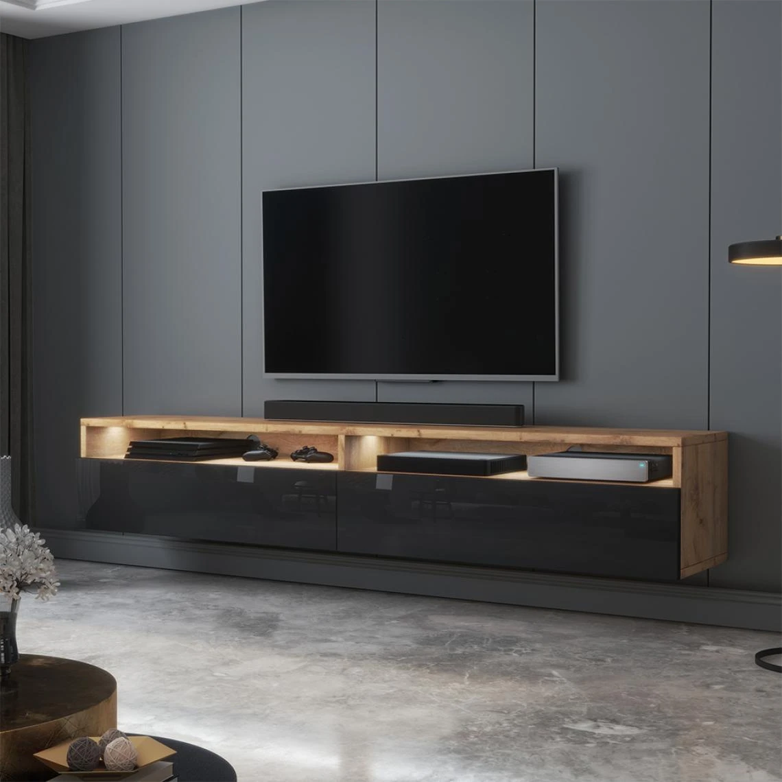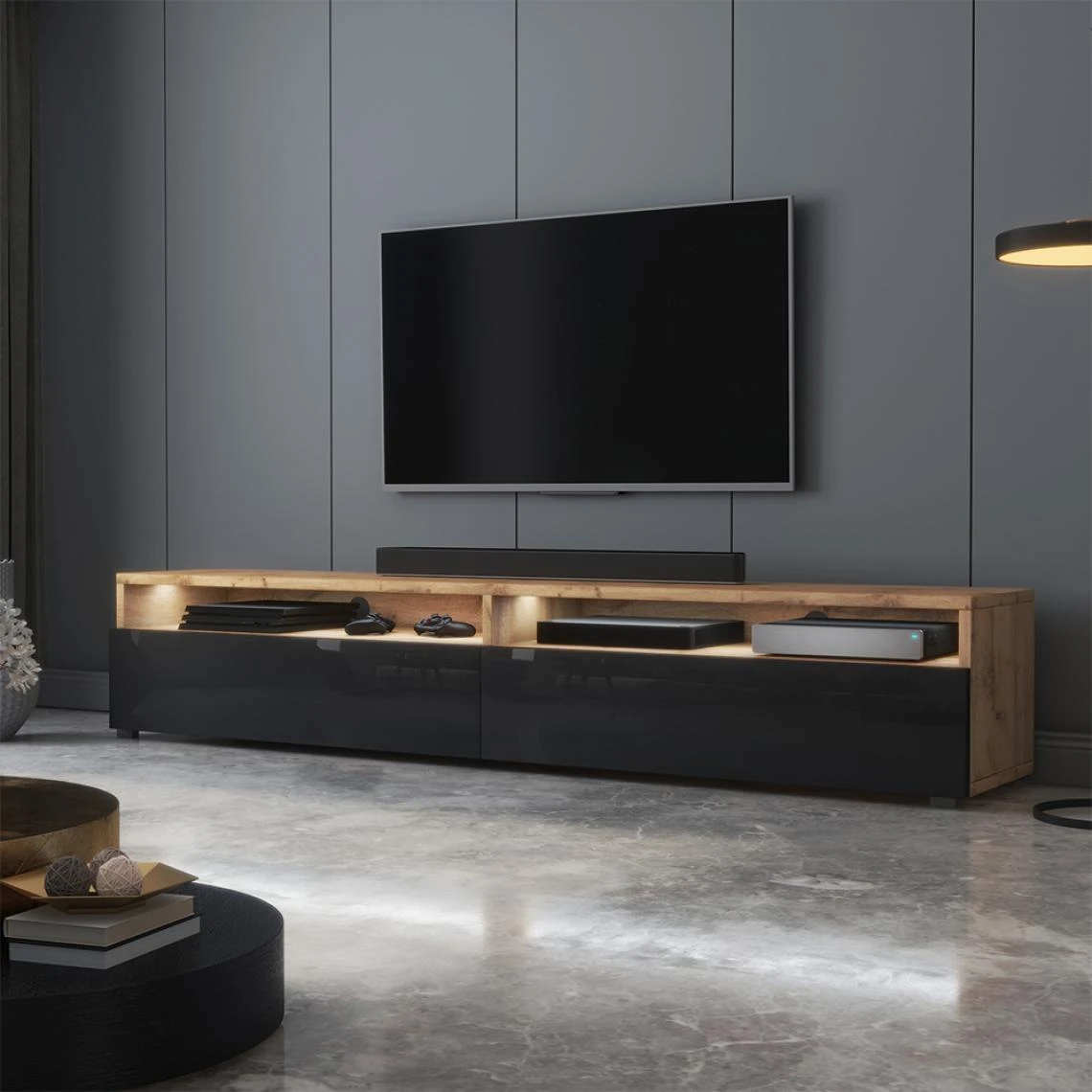 Points forts Selsey Meuble TV – REDNAW – 180 cm – chêne wotan / noir brillant – avec LED