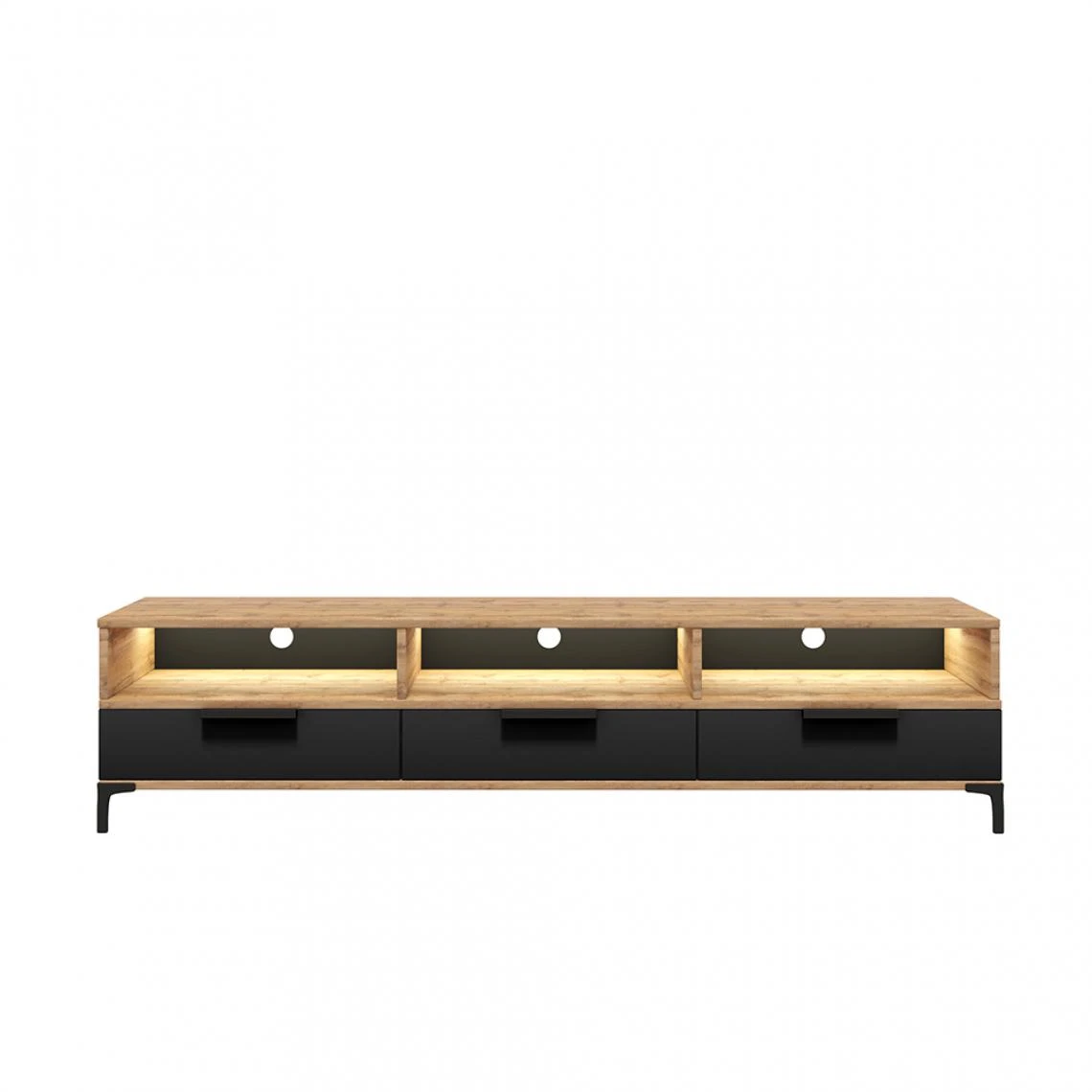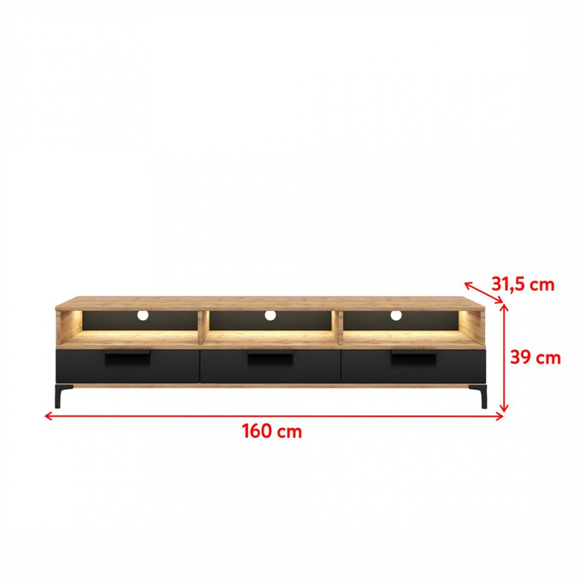 Points forts Selsey Meuble tv – RIKKE – 160 cm – chêne wotan / noir brillant – avec LED à piles