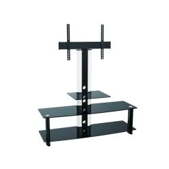 Support design en métal de haute qualité avec revêtement en poudre et superbes étagères noires en verre trempé.