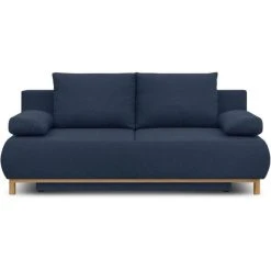 Points forts Tbs Banquette convertible 3 places MIKA – Tissu bleu foncé – Coffre de rangement – L 192 x H 84 x P 93 cm