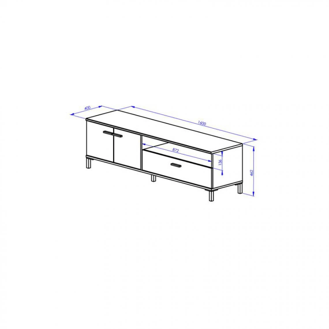 Niche :L. 87 – H. 14 – P. 40 cm. . Pieds :ABS noir. . Portes :2. . Tiroir :1, panneaux de particules revêtus de polypropylène noir sur coulisses à galets noires. . Finition :papier décor. . Garantie :2 ans, pièces. . Poignées :ABS noir. . Structure :et chants en panneaux de particules revêtus de papier décor imitation chêne helvézia. . Charge maxi TV :40 kg. . A monter soi-même. . Dimensions en cm :L. 160 – H. 47 – P. 40. . Taille diagonale max écran (cm/pouce) :60″ (152 cm). . Dispo pcs détachées donnée fournisseur :2 ans. .