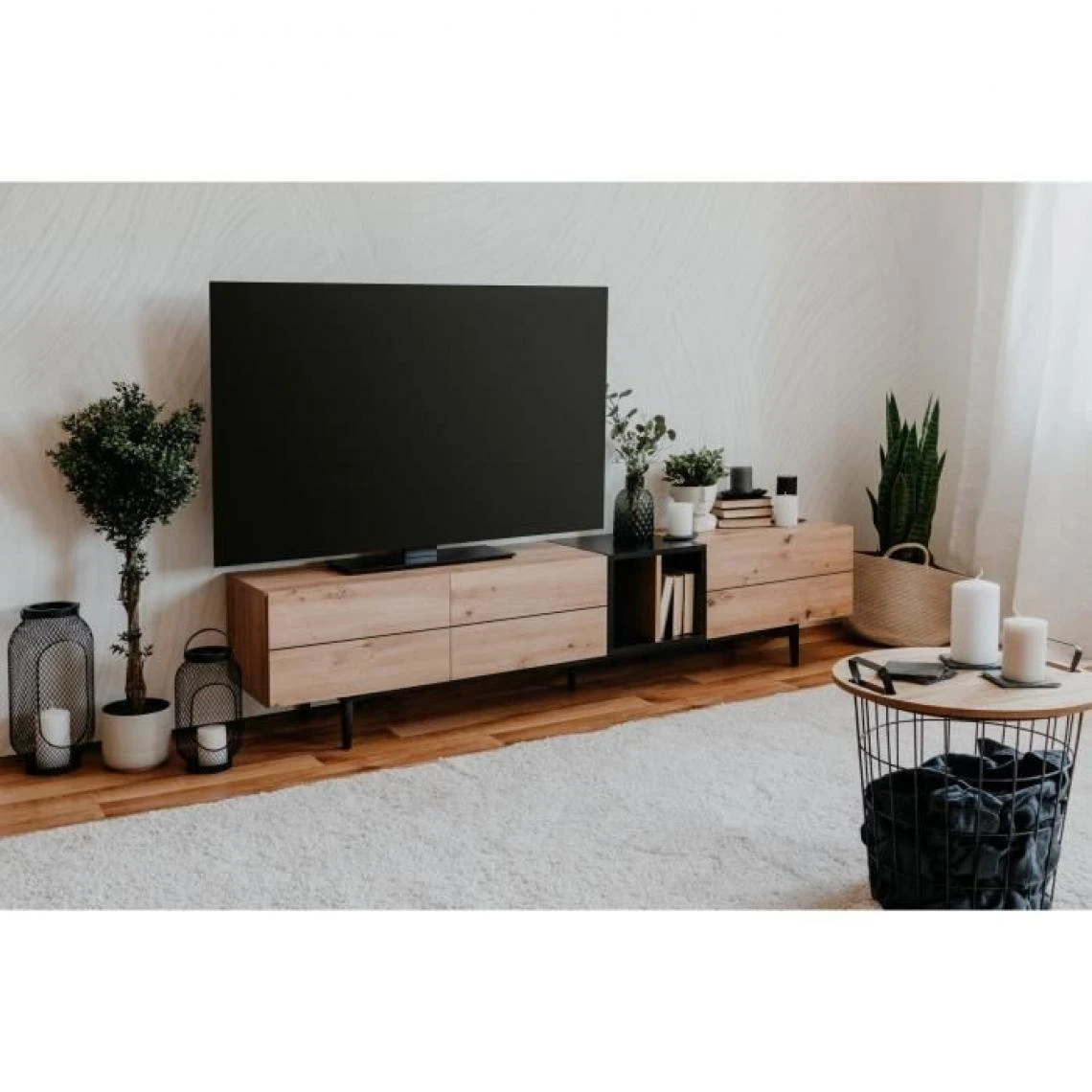 Structure : Panneaux de particules couleur bois et noir, profils MDF.
