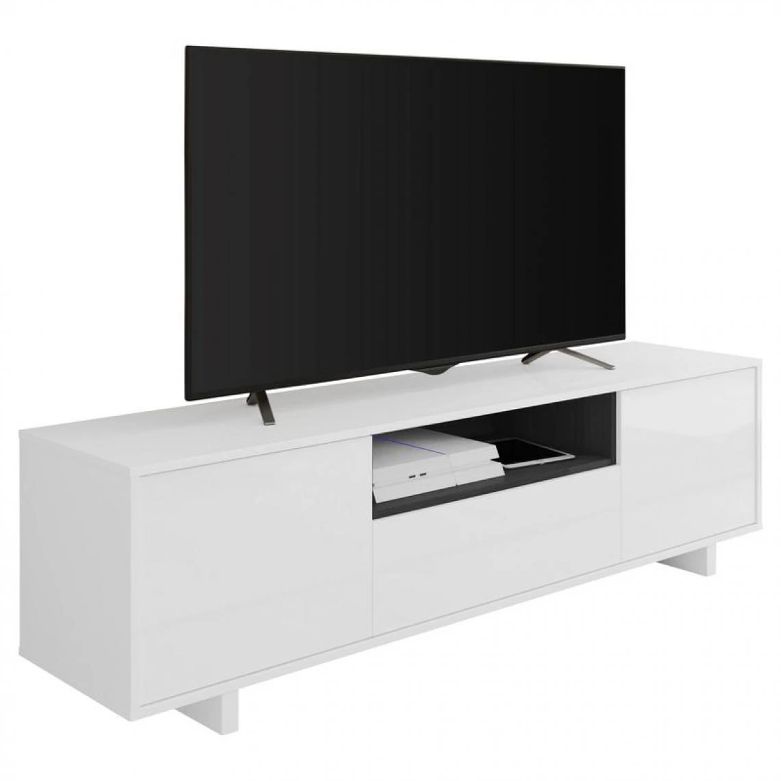 Points forts Usinestreet Meuble TV ARTHUR 3 Portes et 1 Niche L150cm – Blanc / Gris