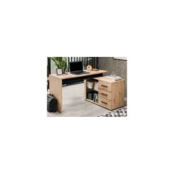 Fonctionnel et esthétique, le bureau d’angle DEVEN vous permettra d’optimiser votre espace de travail grâce à ses nombreux rangements. Composé de 3 tiroirs et de 3 niches vous pourrez organiser et ranger facilement tous vos documents. Il dispose également d’un grand plateau, idéal pour accueillir vos fournitures et pour vous accompagner tout au long de la journée.