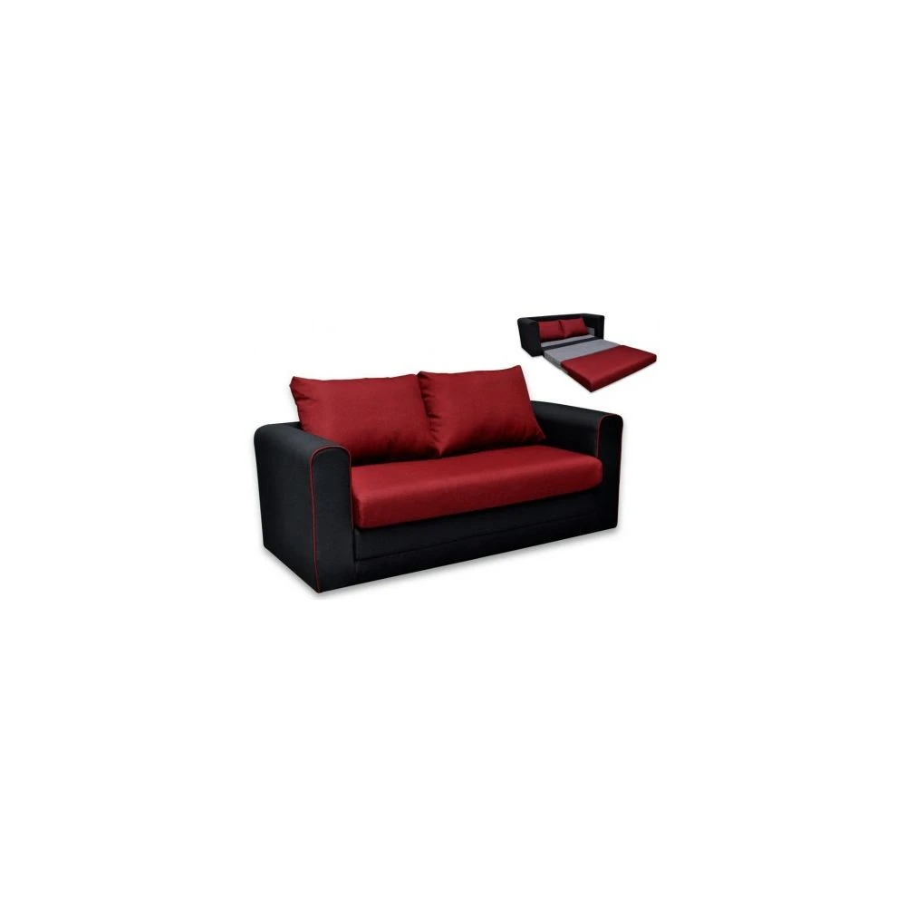 Points forts Vente-Unique Canapé 2 places convertible en tissu DANUBE – Noir et Rouge avec passepoil rouge