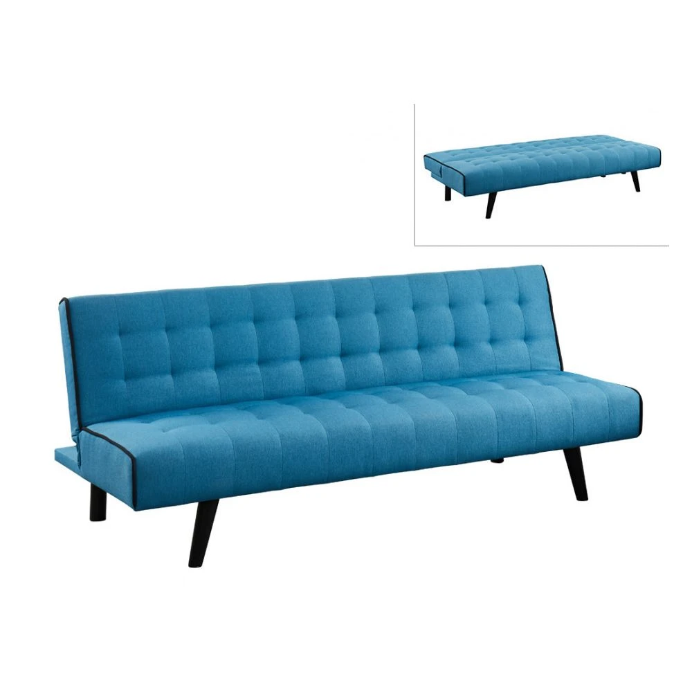Points forts Vente-Unique Canapé 3 places convertible clic-clac BAYOU en tissu – Bleu et passepoil noir