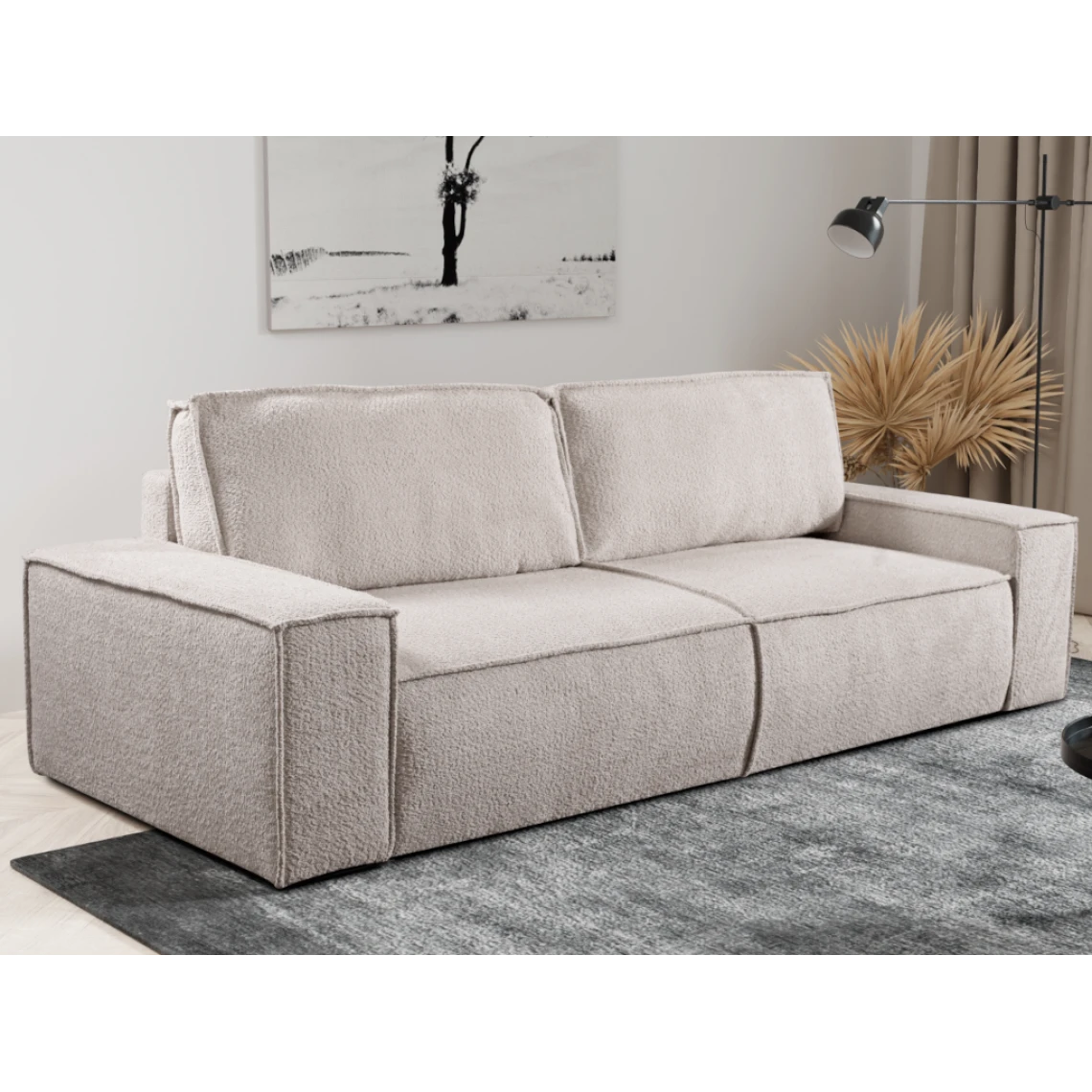 Points forts Vente-Unique Canapé 3 places convertible en tissu bouclette beige AMELIA