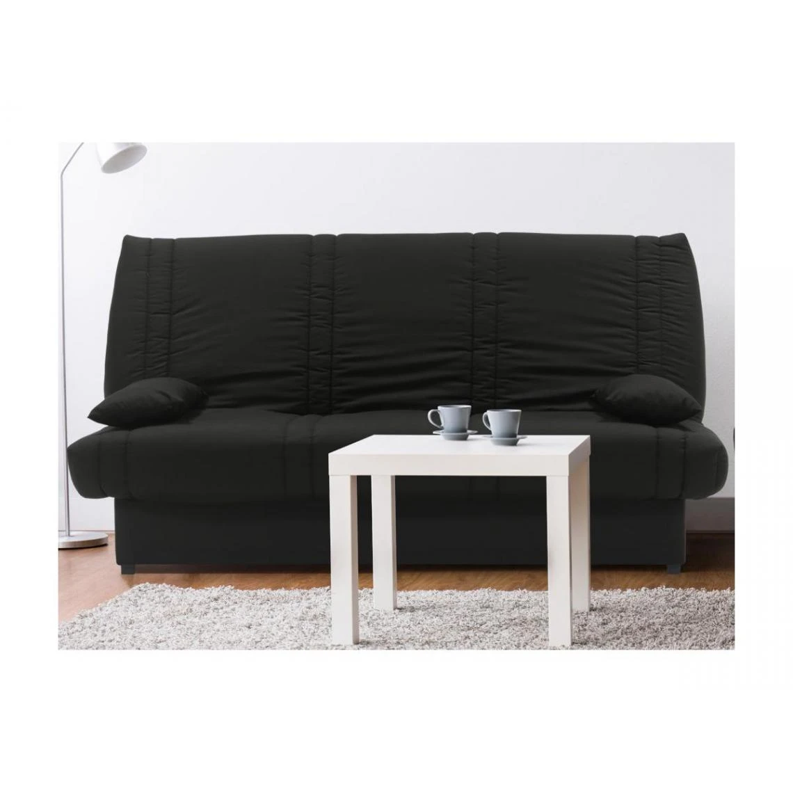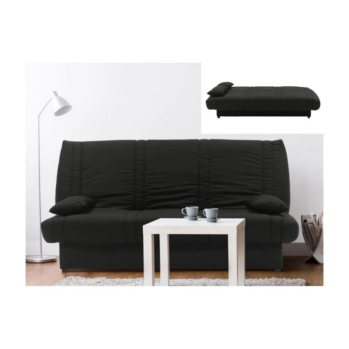 Points forts Vente-Unique Canapé convertible clic-clac 100% coton avec coffre de rangement FARWEST II – Noir coussins noir