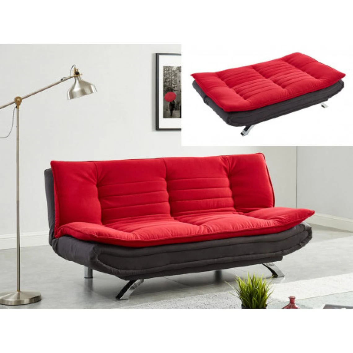 Points forts Vente-Unique Canapé convertible clic-clac en tissu DEMIDO III – Bicolore rouge et anthracite