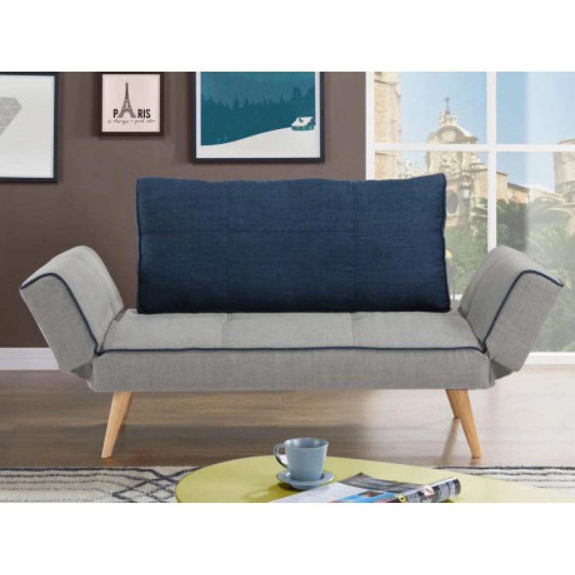 Points forts Vente-Unique Canapé convertible clic-clac en tissu EBATY II – Gris et bleu