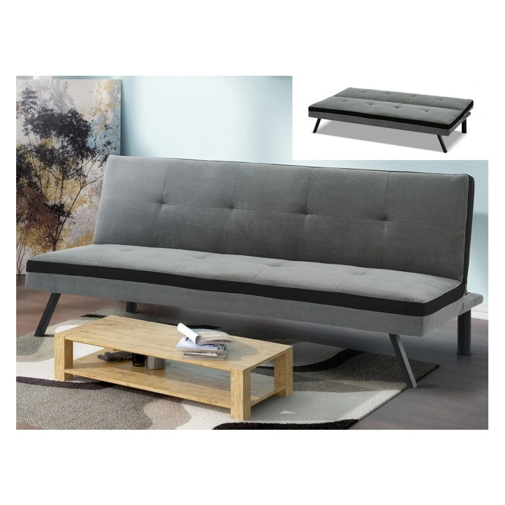 Points forts Vente-Unique Canapé convertible clic-clac en tissu SKALA – Gris et bande noire