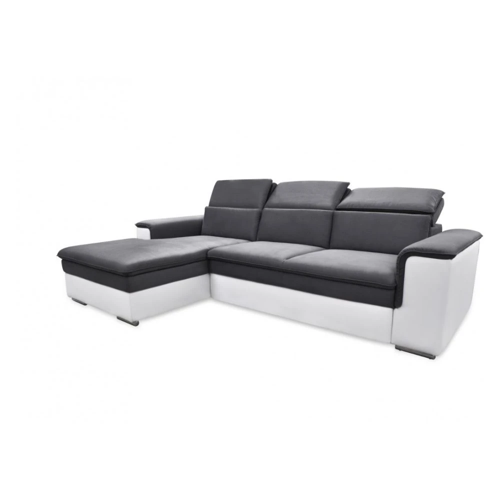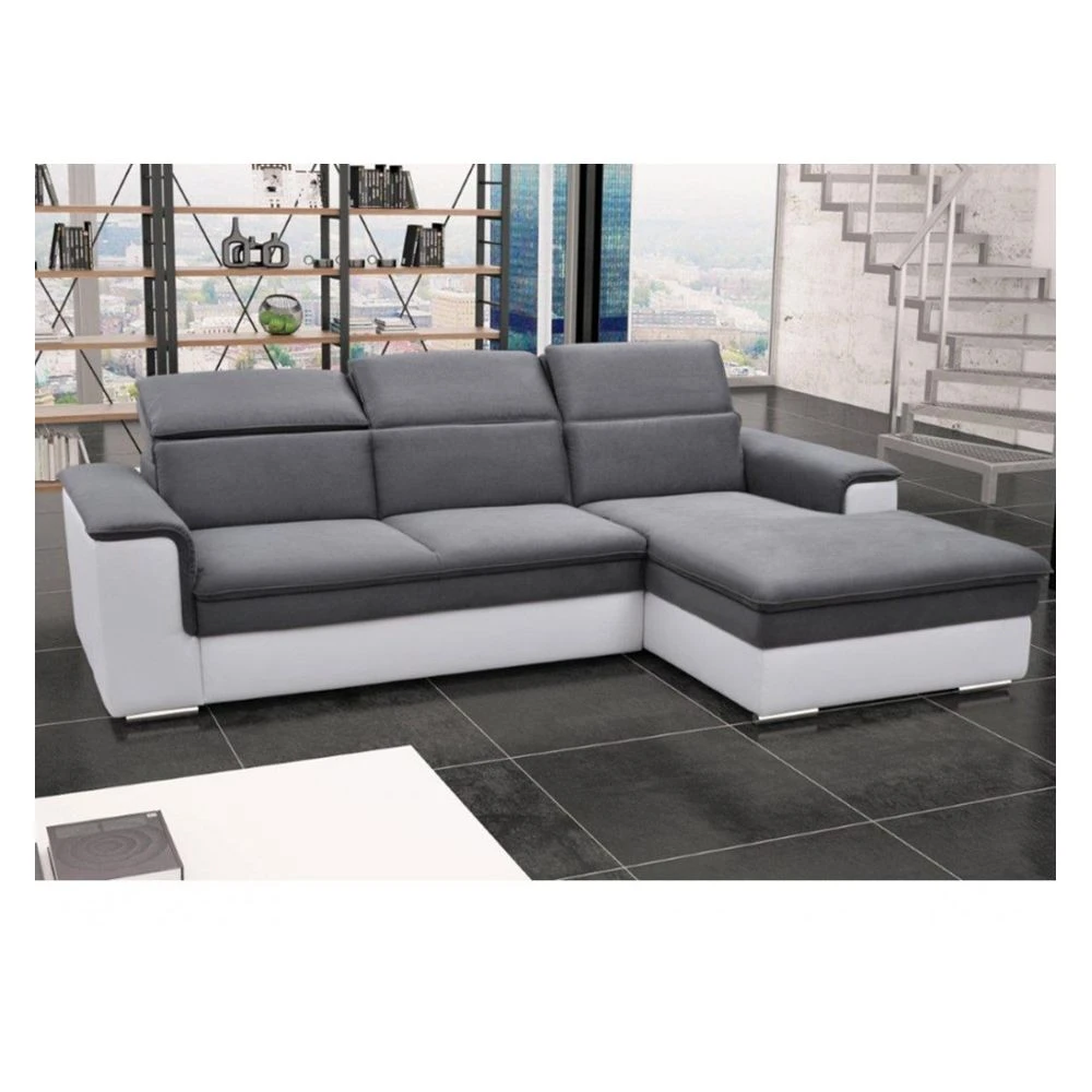 Points forts Vente-Unique Canapé d’angle convertible en microfibre et simili CONNOR – Bicolore Blanc/gris – Angle gauche