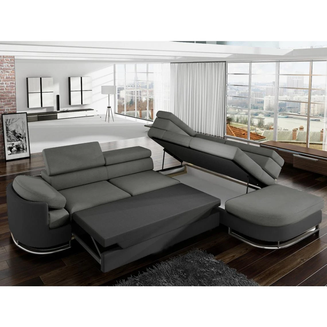 Points forts Vente-Unique Canapé d’angle convertible en tissu et simili MYSEN – Gris et anthracite – Angle droit