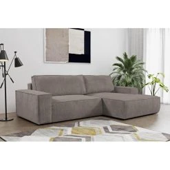 Points forts Vente-Unique Canapé d’angle convertible en velours côtelé marron AMELIA – Angle droit