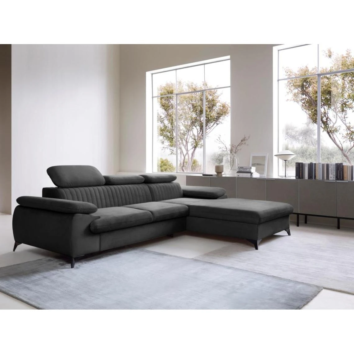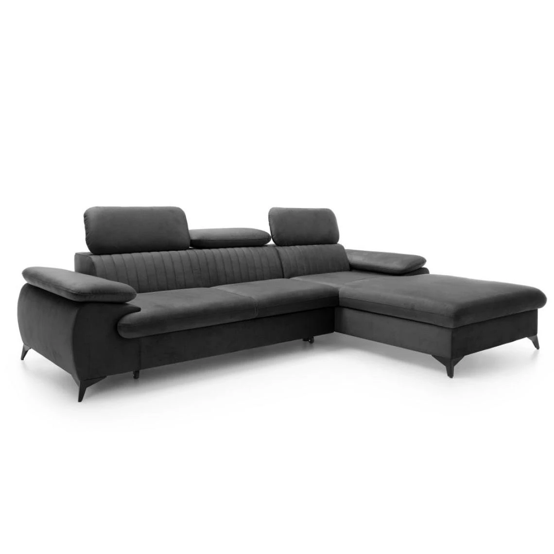 Points forts Vente-Unique Canapé d’angle droit convertible en velours gris anthracite SAMARA