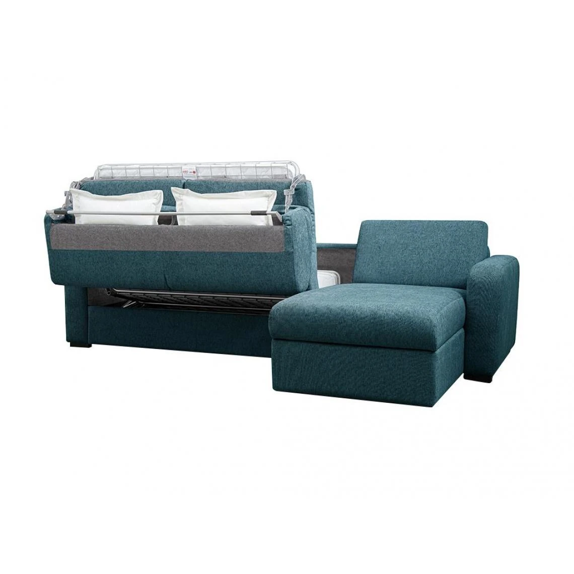 Points forts Vente-Unique Canapé d’angle droit convertible express en tissu bleu BEVIS