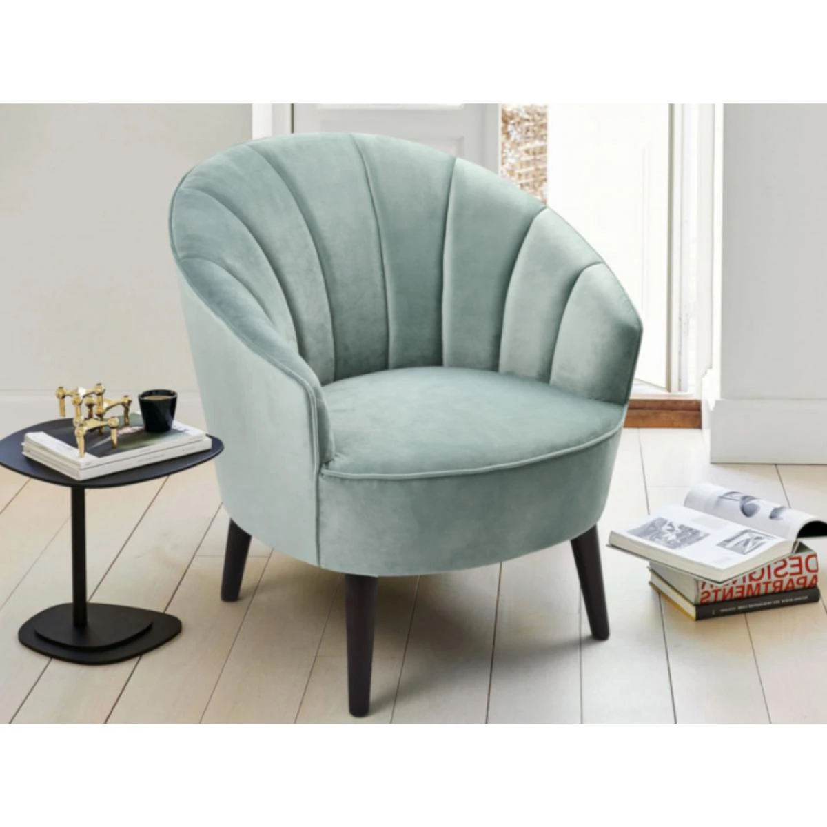 Points forts Vente-Unique Fauteuil en velours ARCHIE – Vert d’eau