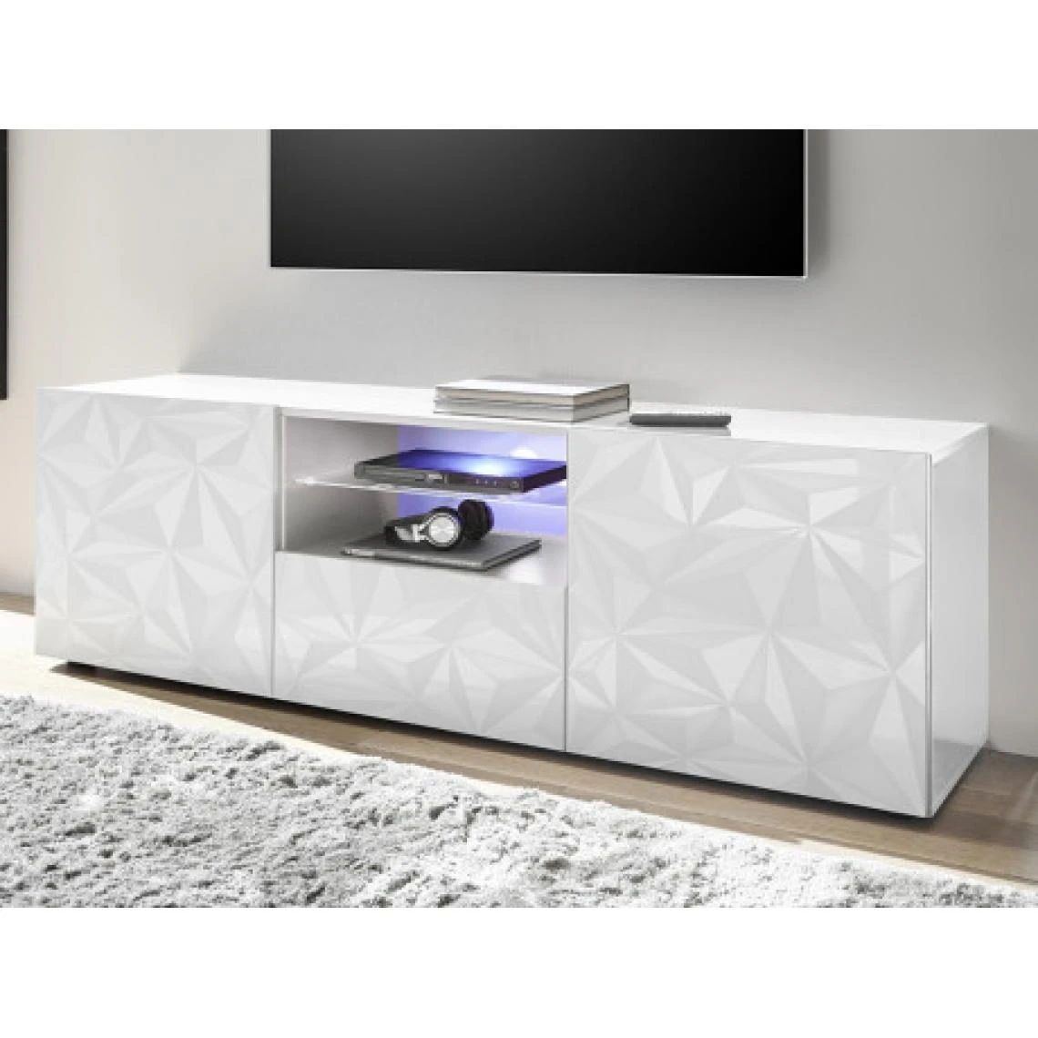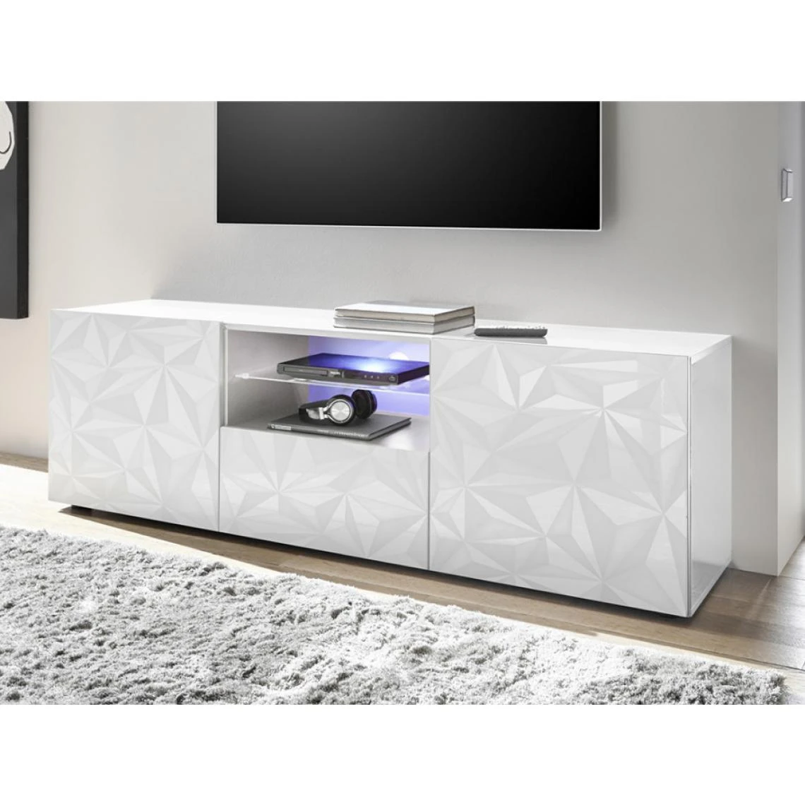 Points forts Vente-Unique Meuble TV ERIS – LEDs – 2 portes & 1 tiroir – Blanc laqué