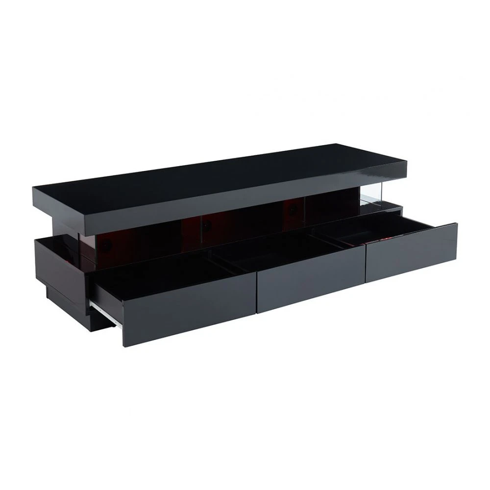 Points forts Vente-Unique Meuble TV FABIO – MDF laqué noir – LEDs – 3 tiroirs & 3 niches