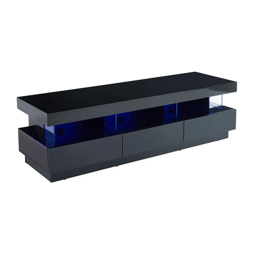 Très fonctionnel grâce à ses 3 niches et 3 tiroirs, ce meuble TV se démarque aussi par ses LEDs multicolores, qui en font un véritable élément de déco design et audacieux !