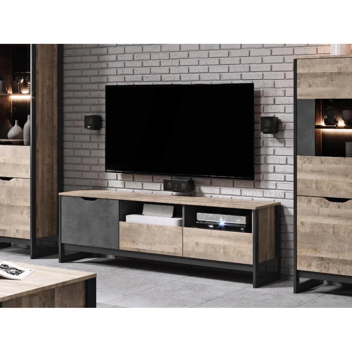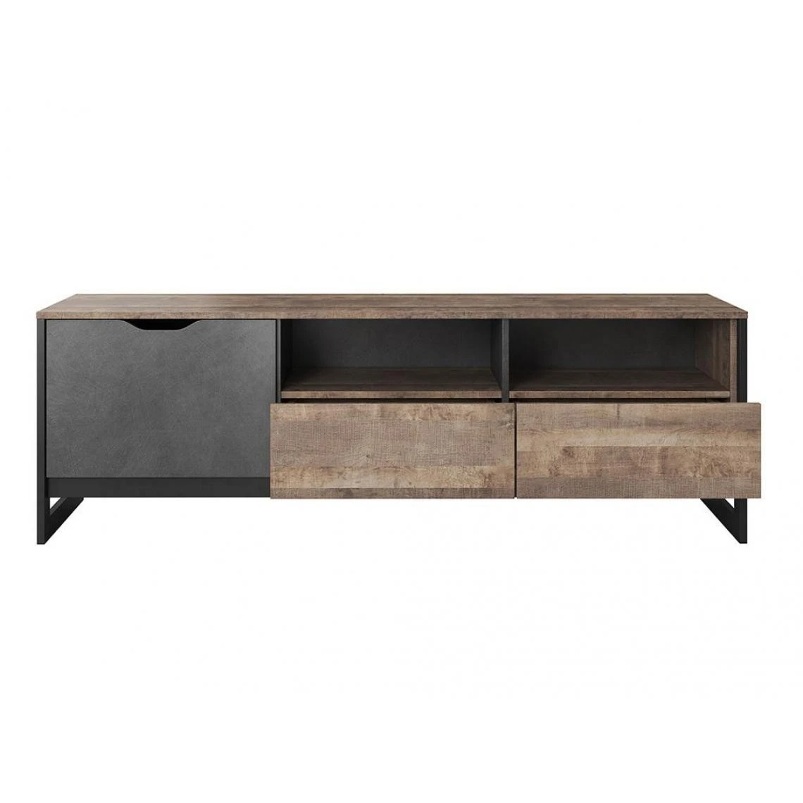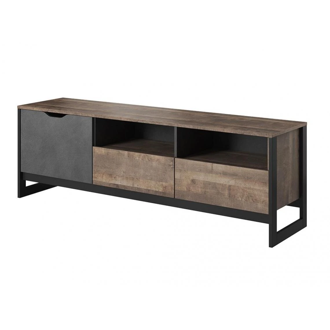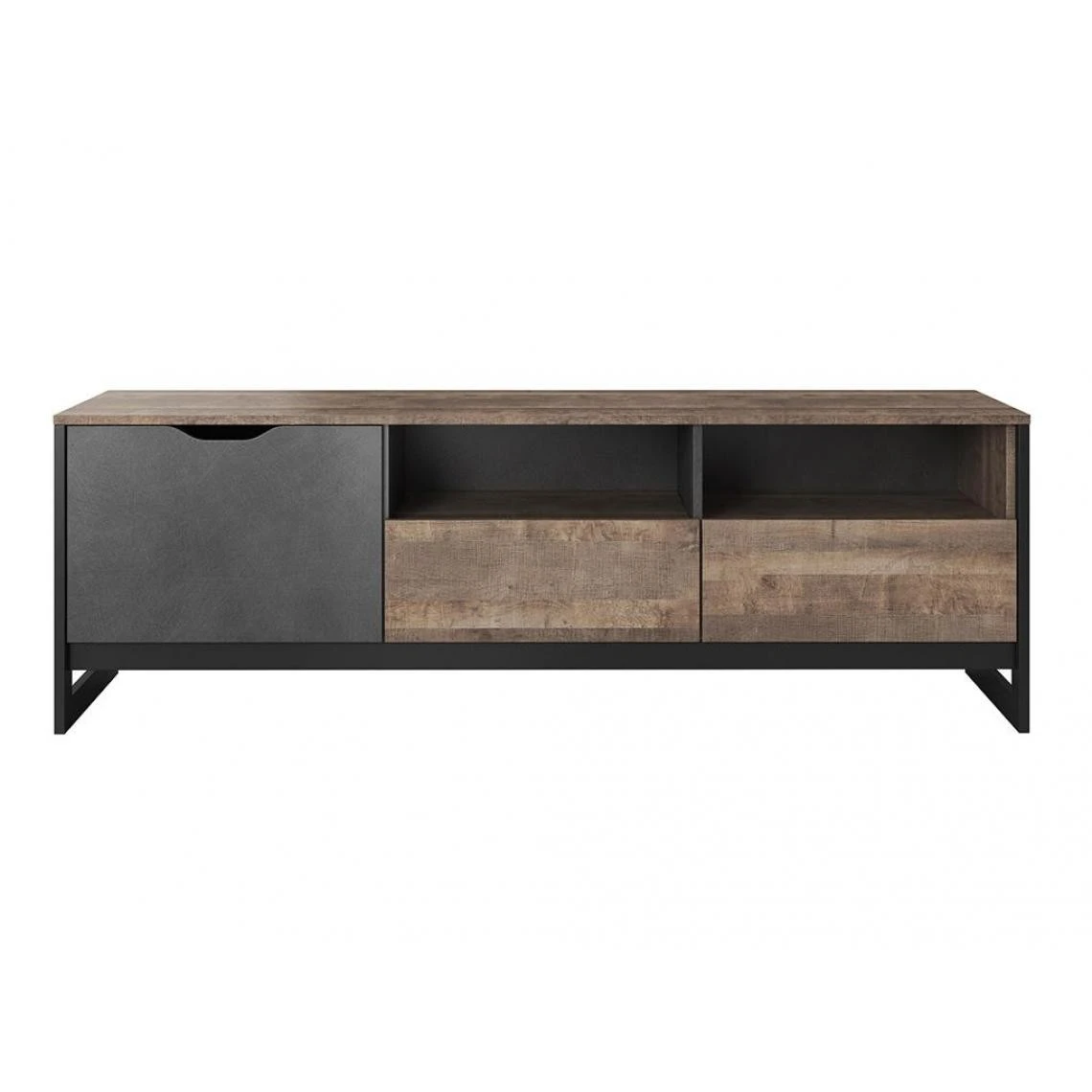 Points forts Vente-Unique Meuble TV LAONILE – 1 porte, 2 tiroir et 2 niches – Noyer et anthracite