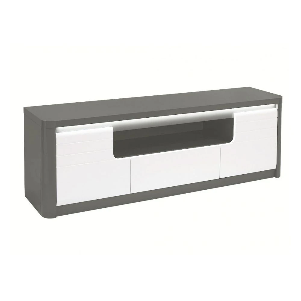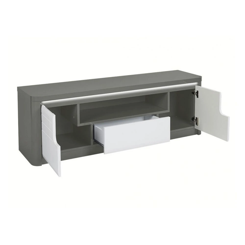 Points forts Vente-Unique Meuble TV PERCEPTION – LEDs – 2 portes & 1 tiroir – Gris & Blanc
