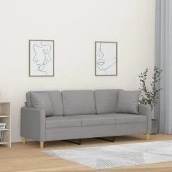 Points forts Vidaxl vidaXL Canapé 3 places et oreillers et coussins Gris clair 180cm Tissu
