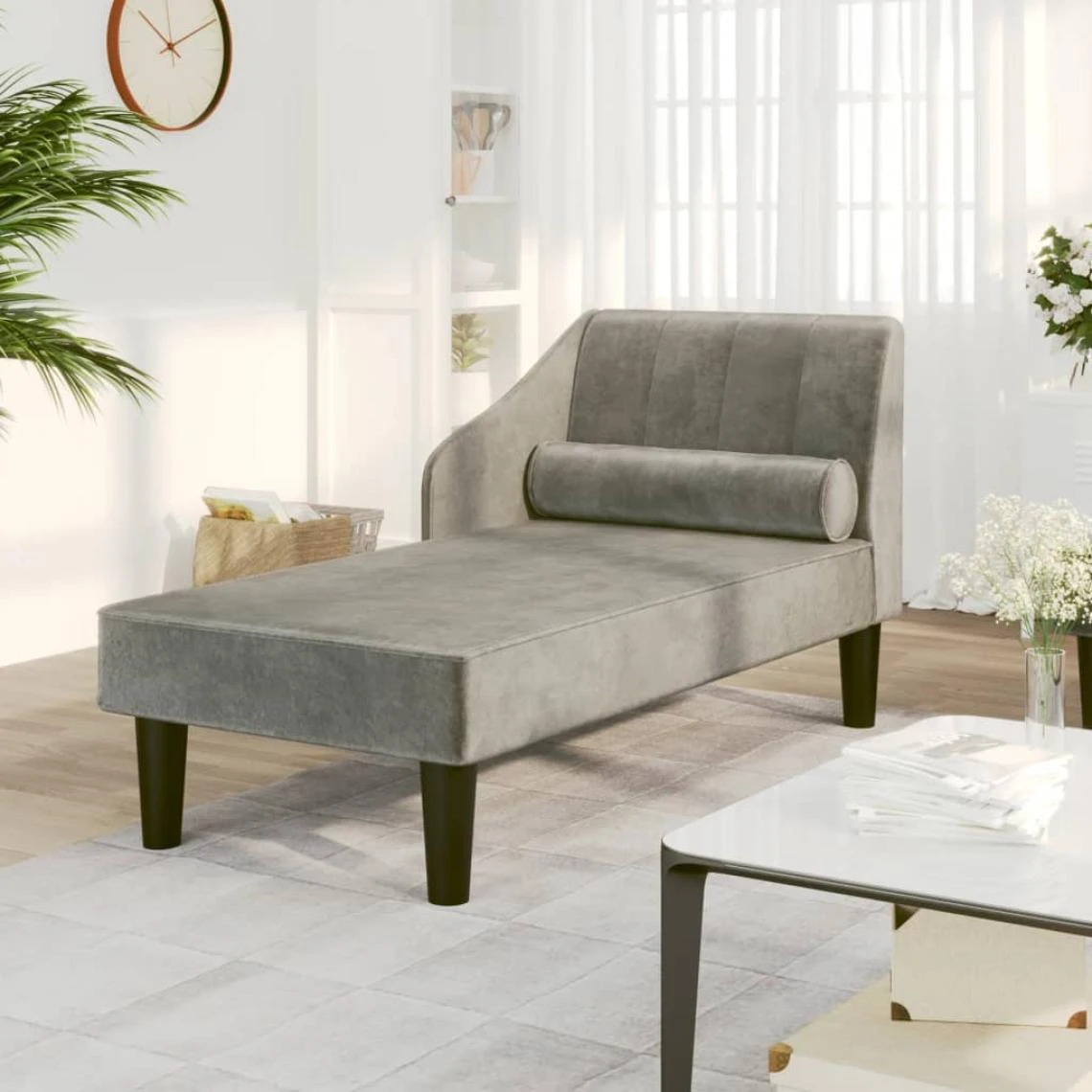 Points forts Vidaxl vidaXL Chaise longue avec traversin gris clair velours