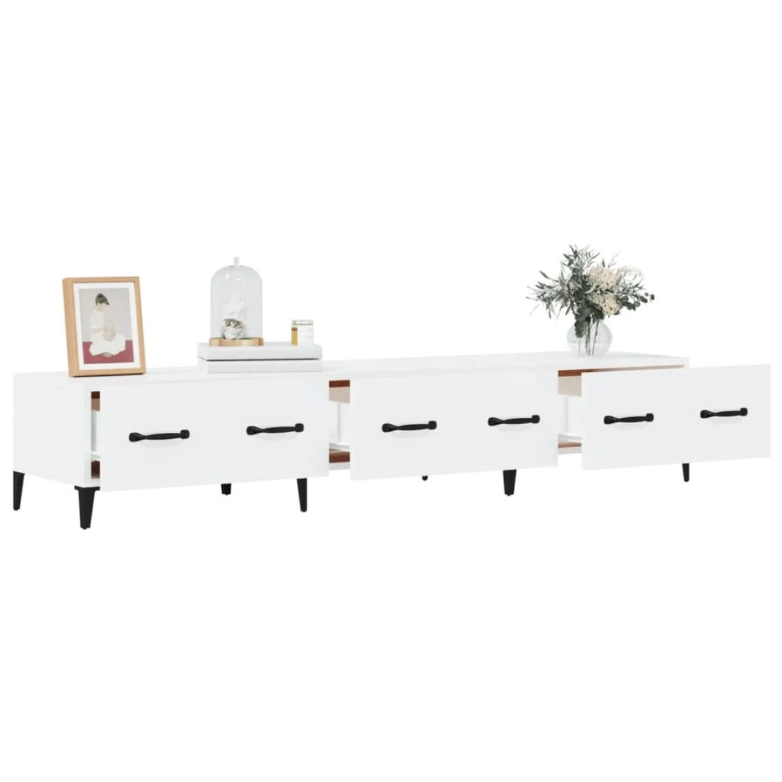 Points forts Vidaxl vidaXL Meuble TV Blanc brillant 150×34,5×30 cm Bois d’ingénierie