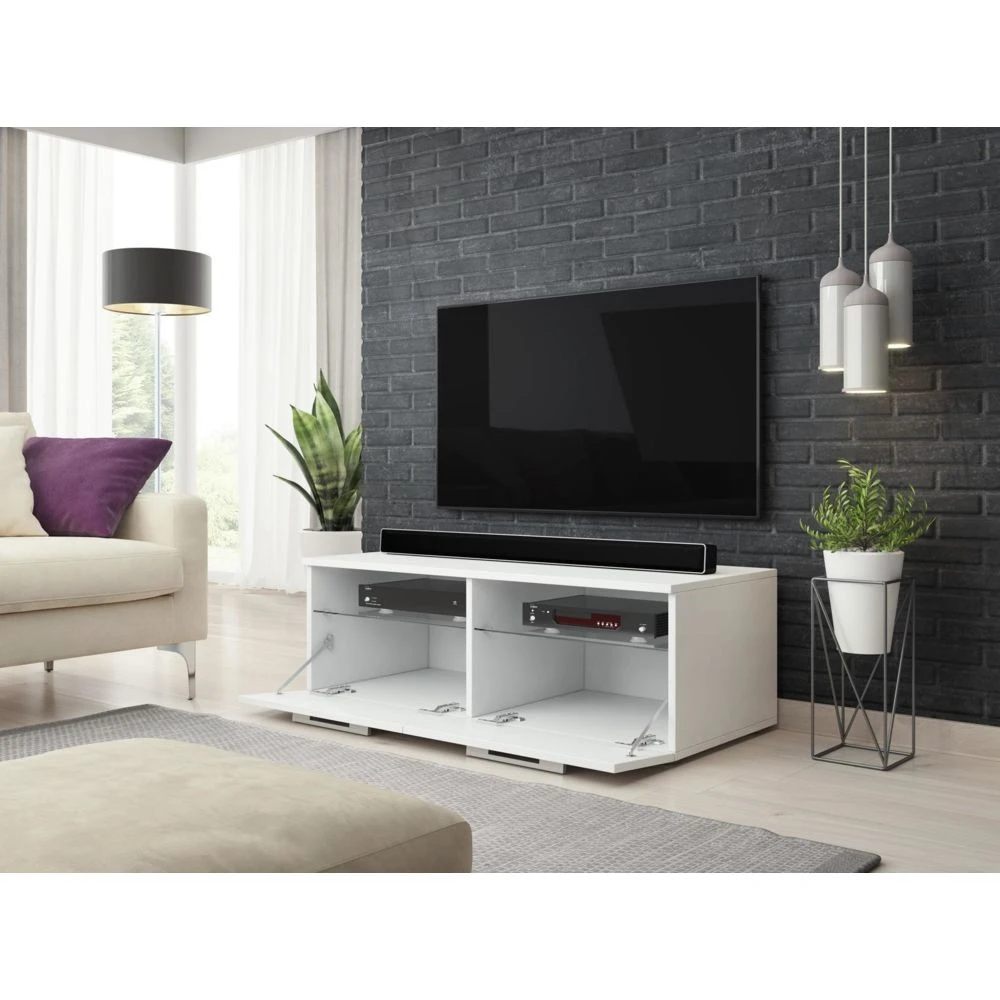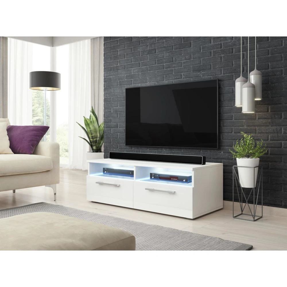 Points forts Vivaldi VIVALDI Meuble TV – BONN – 100 cm – blanc mat / blanc brillant +LED – style moderne