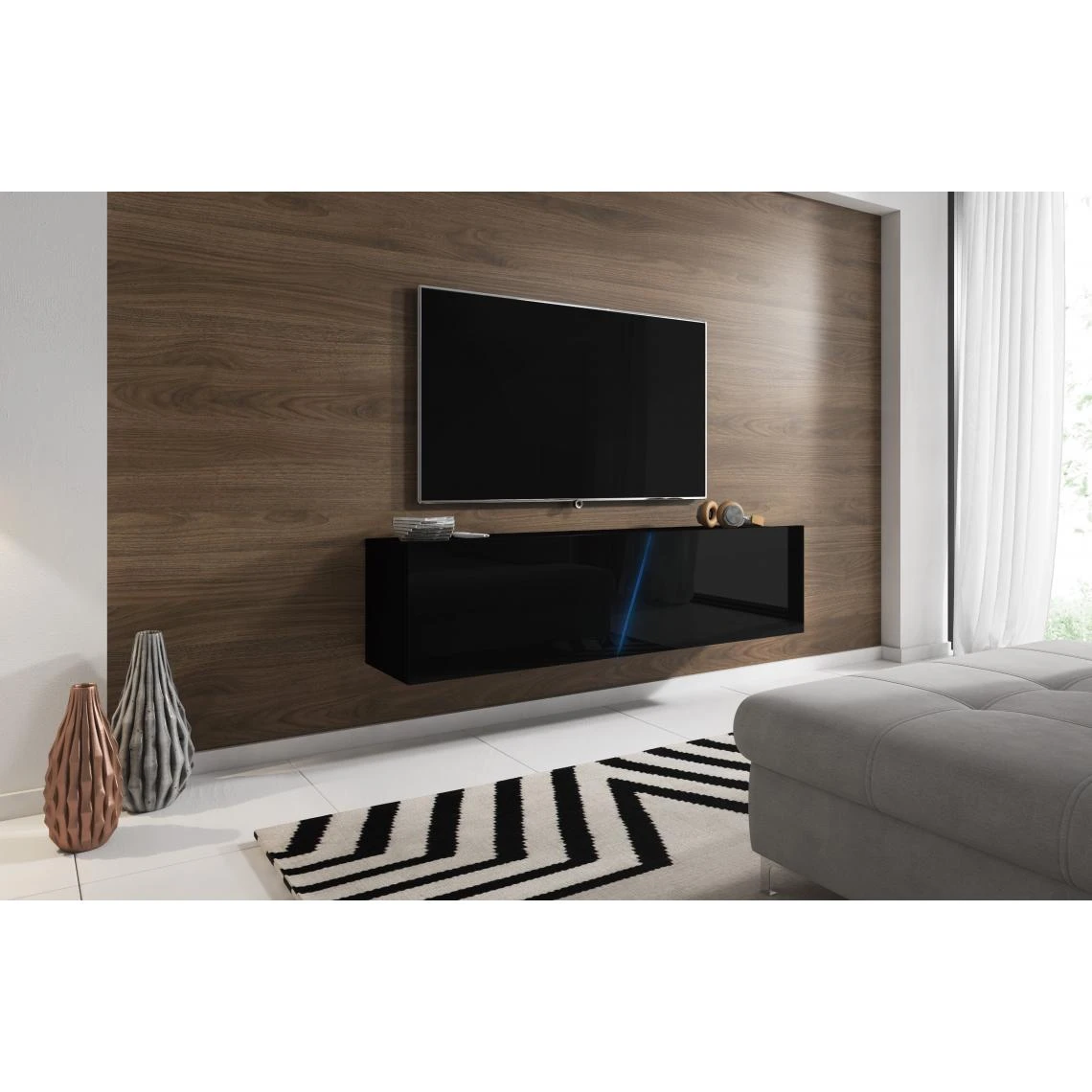 Points forts Vivaldi VIVALDI Meuble TV – SLANT – 160 cm – noir mat / noir brillant avec LED – style moderne