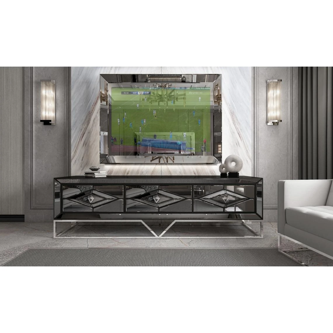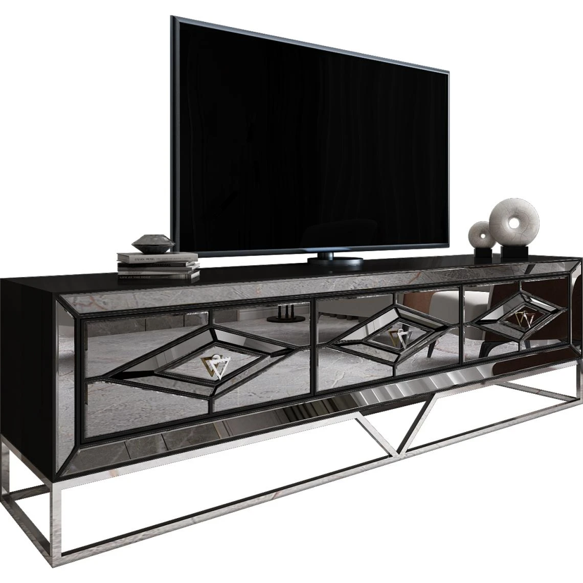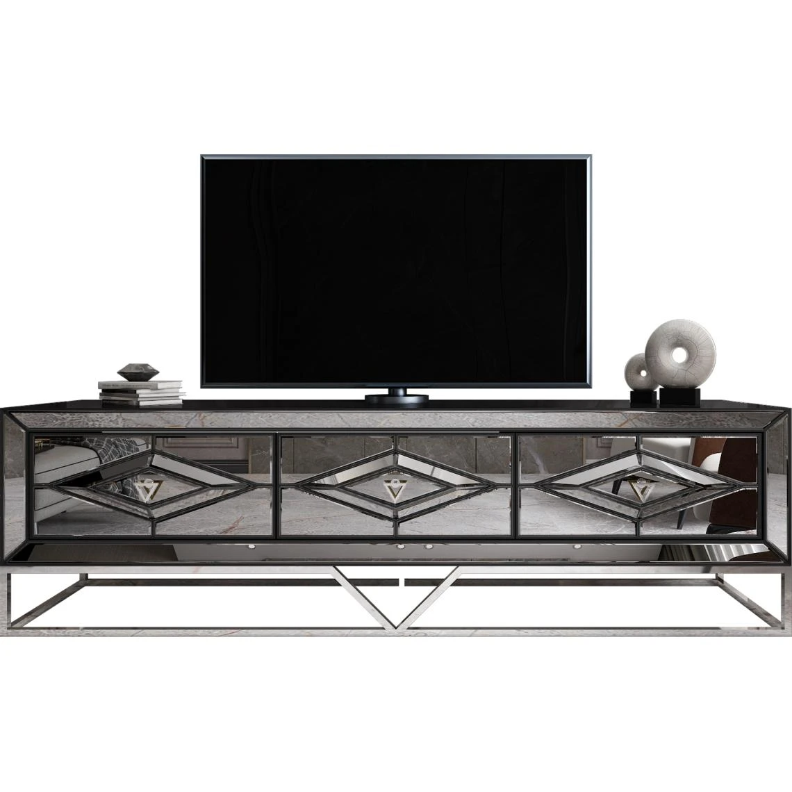 Nom: Meuble tv design 3 tiroirs en miroir fumé avec piètement en acier chromé argenté L. 208 x P. 48 x H. 66 cm collection LEXUS