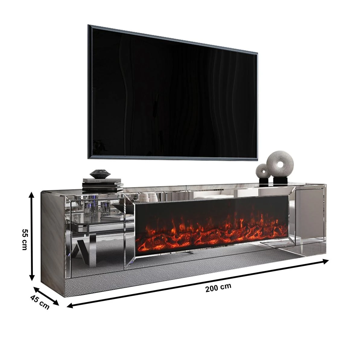 Points forts Vivenla Meuble tv design avec cheminée artificielle intégrée en miroir clair livré monté 200 cm de largeur collection Alonso ALONSO